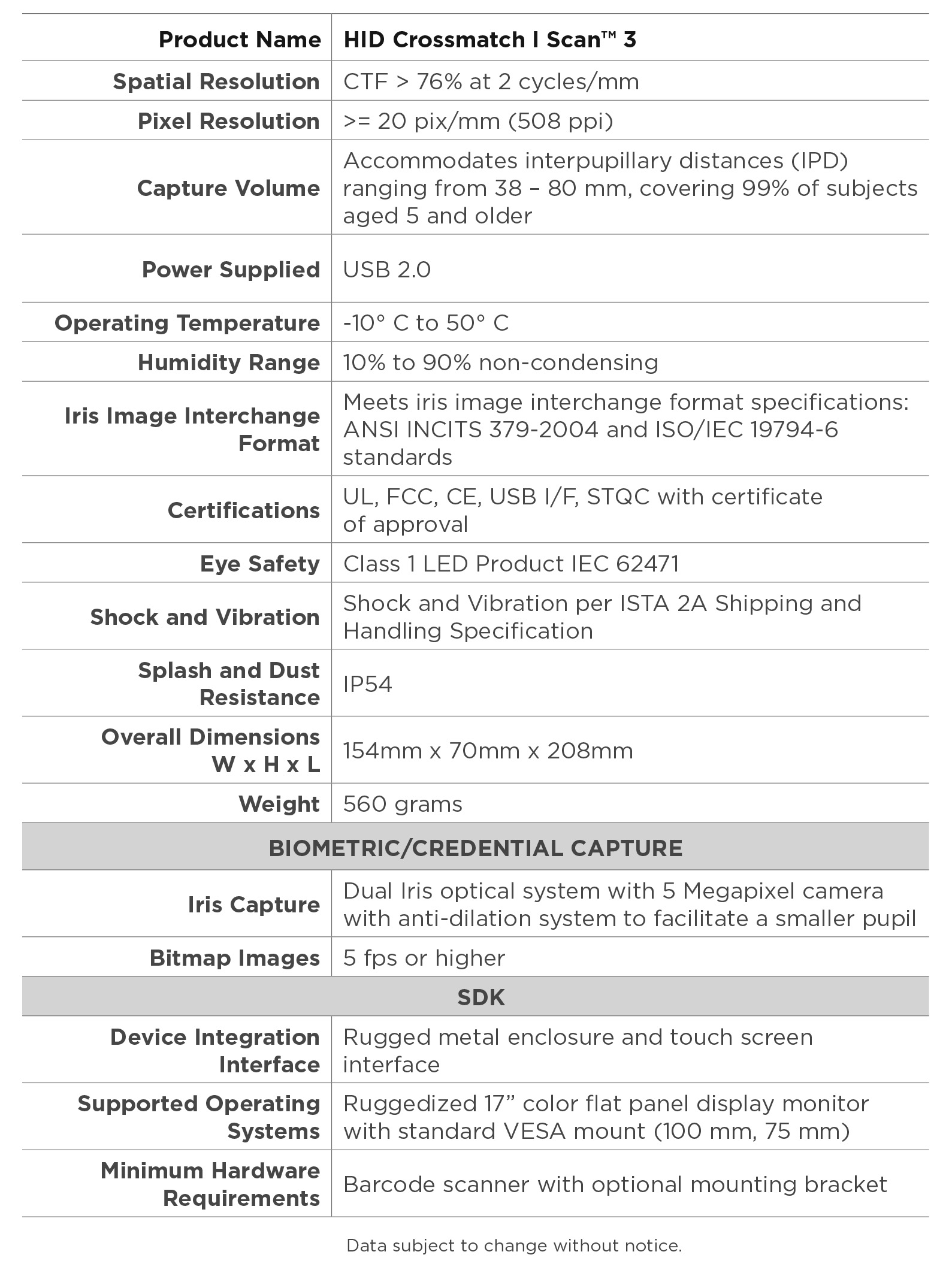 * Dual Iris capture in under five seconds